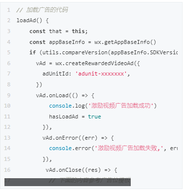 首先,广告模板代码会让你在onLoad()函数中初始化广告代码。这里,我们需要将其封装在一个独立函数中。