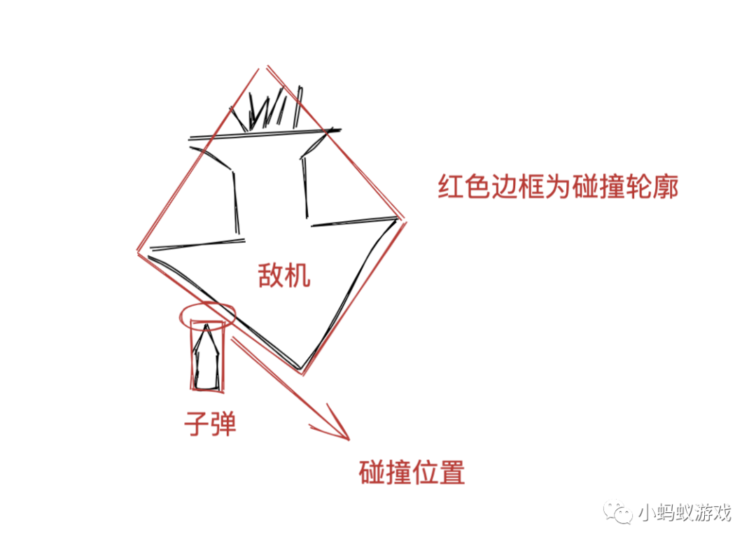 如果敌机使用“矩形”碰撞轮廓,在碰撞的时候会发生下面的事情。
