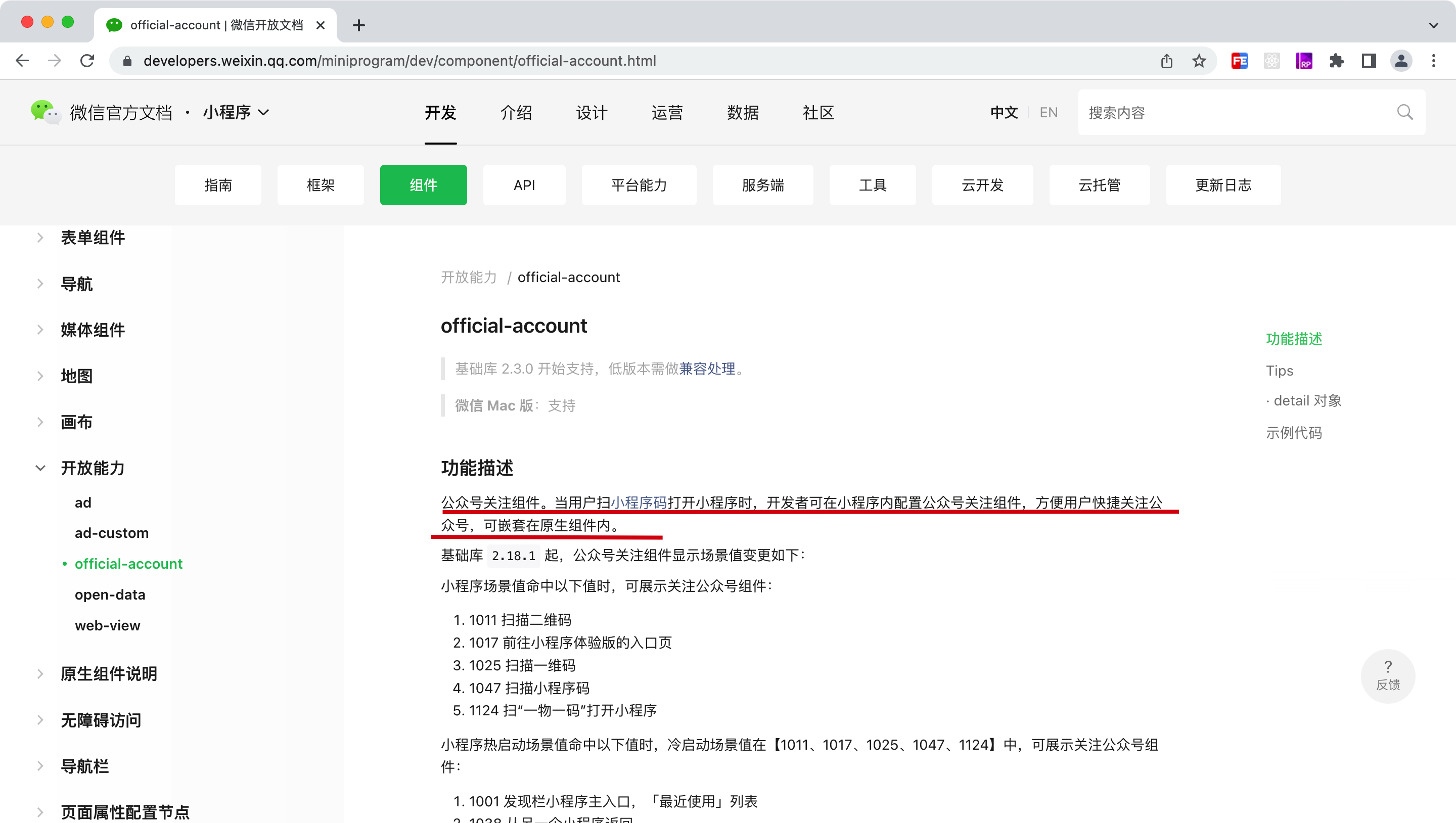 1、关注公众号组件是非个人主体才有的,但是我好奇看了下这个开源小程序的主体,原来是个人主体,也就是说关注公众号组件对主体并不做要求