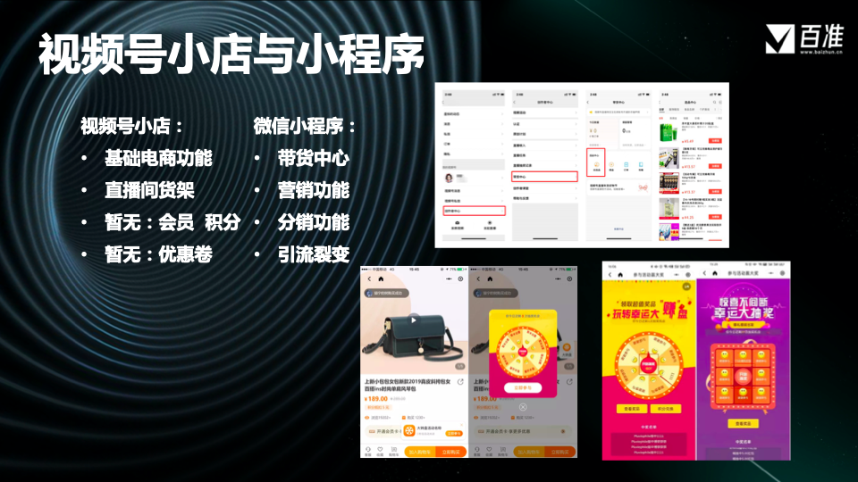 现在,小程序跟视频号已经完成了互通,它的功能比视频号小店的功能更齐全,玩法也更多样化。