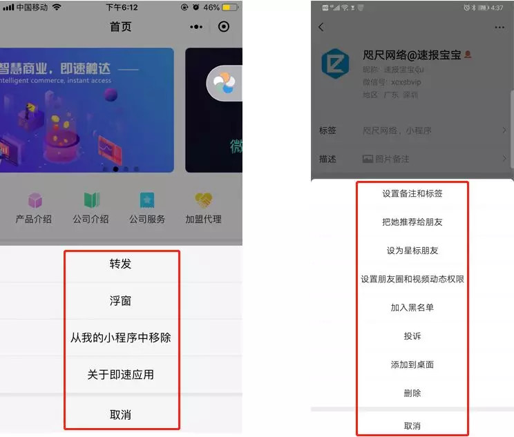 1)小程序右上角“…”页面大改版,重点突出互动功能