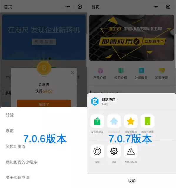 最后一部分是小程序系统功能,包括浮窗、设置、反馈与投诉,其中设置、反馈与投诉是原来设置在小程序主页的重要功能,此次更新正式将这两个能力前置。