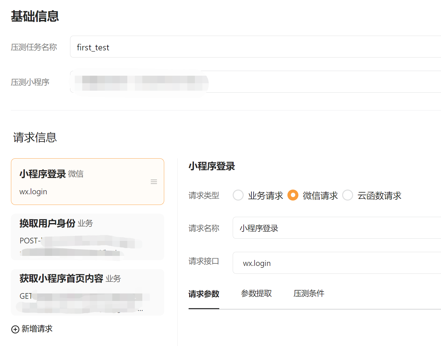 需求:小程序A希望对首页内容进行压测,观察100个用户同时打开首页的表现是否有异常。可以按照以下步骤进行: