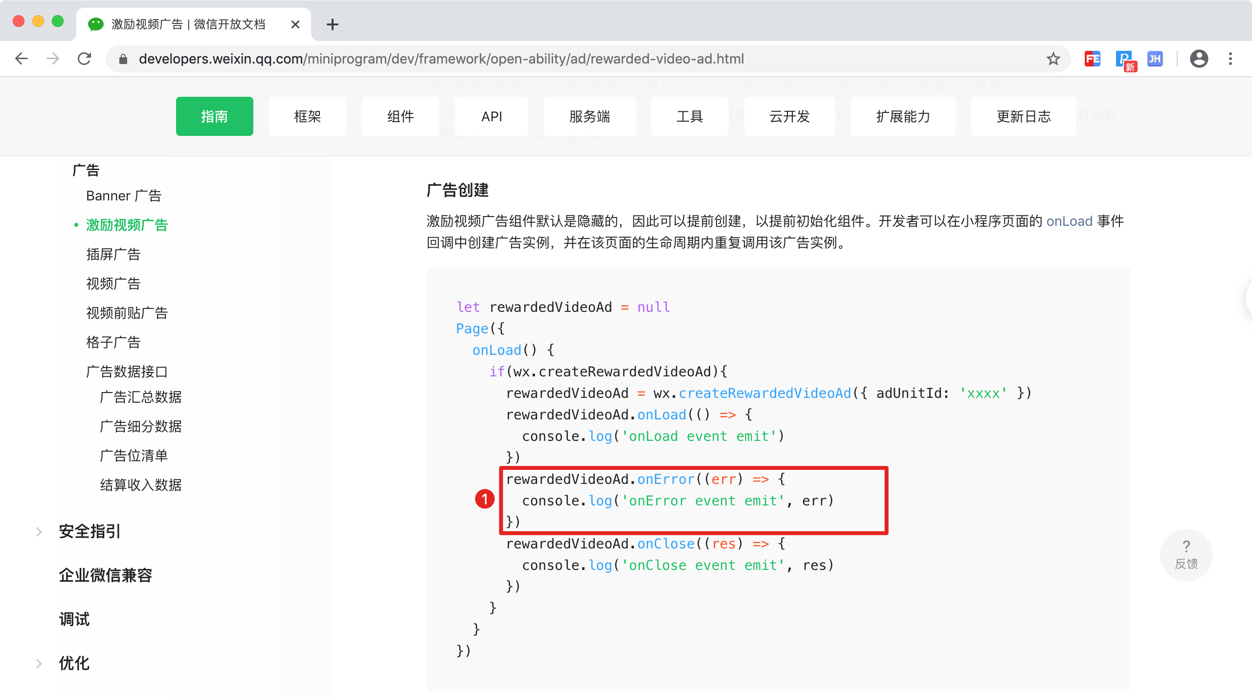https://developers.weixin.qq.com/miniprogram/dev/api/ad/RewardedVideoAd.onError.html
