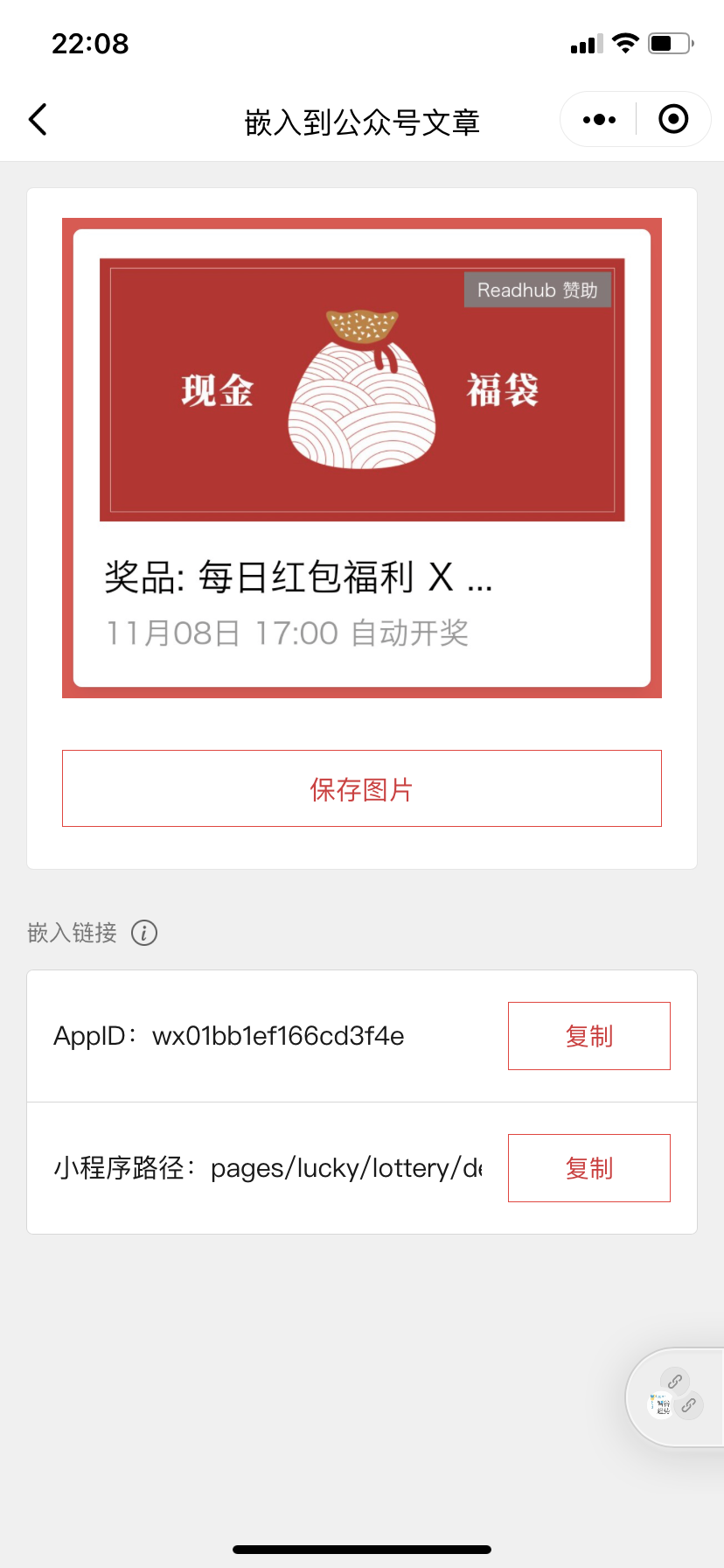 为了更好的方便小程序嵌入公众号,参考了抽奖助手的以下设计