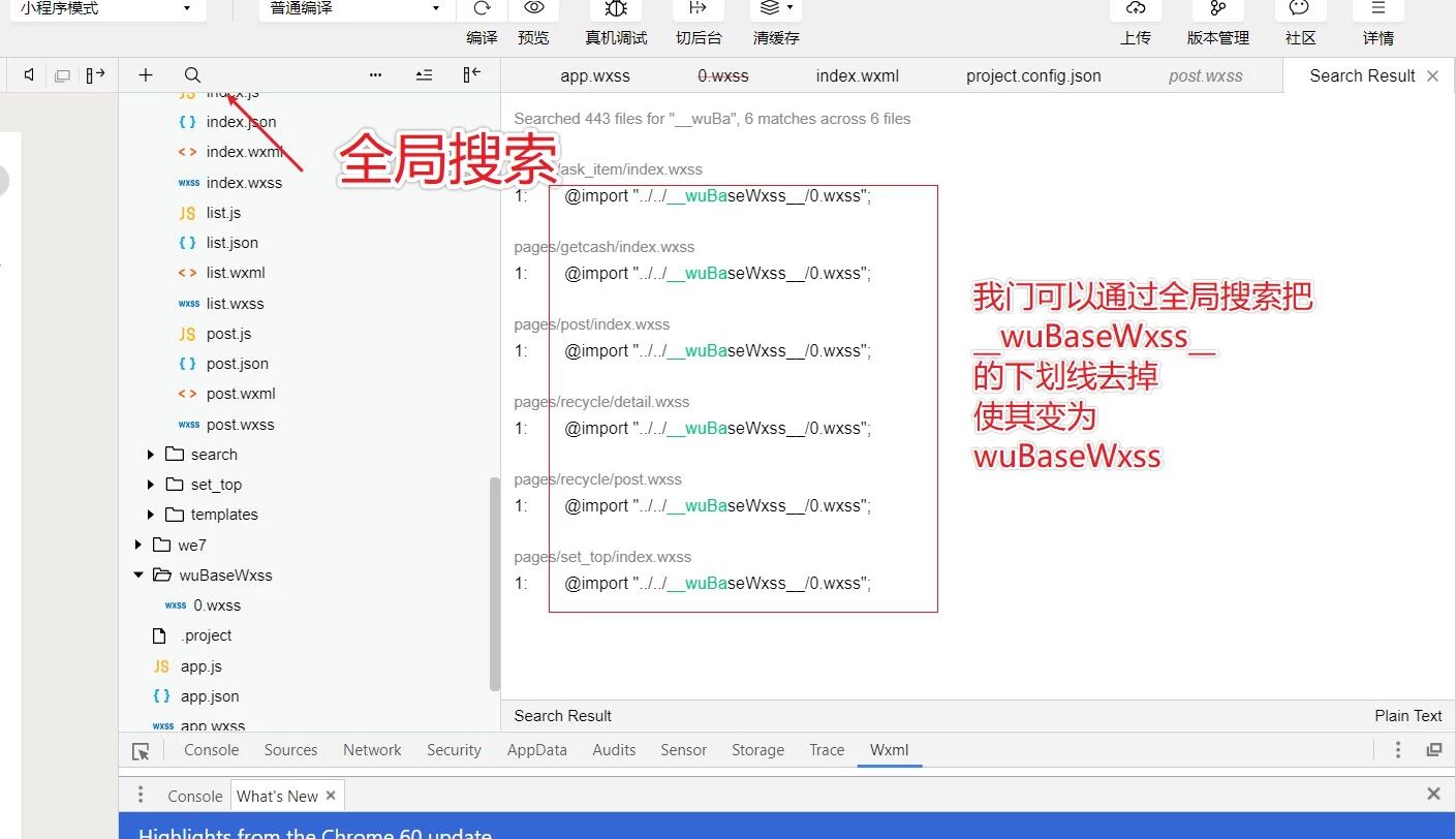 @import "../../../__wuBaseWxss__/0.wxss";的这段代码中的__wuBaseWxss__修改为wuBaseWxss后保存。