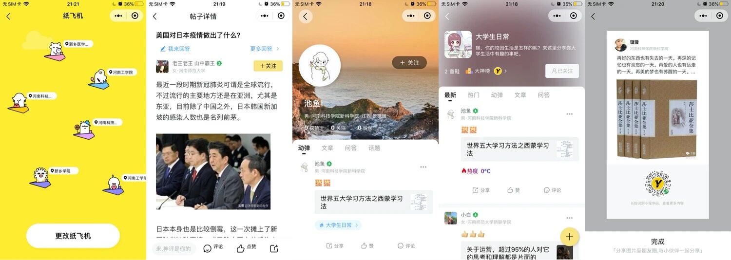 - 【纸飞机】用户可以发送纸飞机其他用户可以回复别人的纸飞机,别人不能看到其他人的回复内容