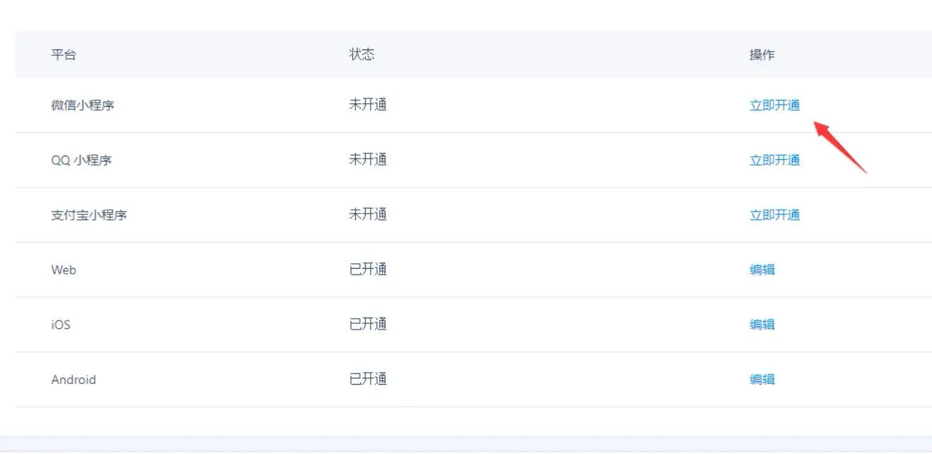 点击开通微信小程序