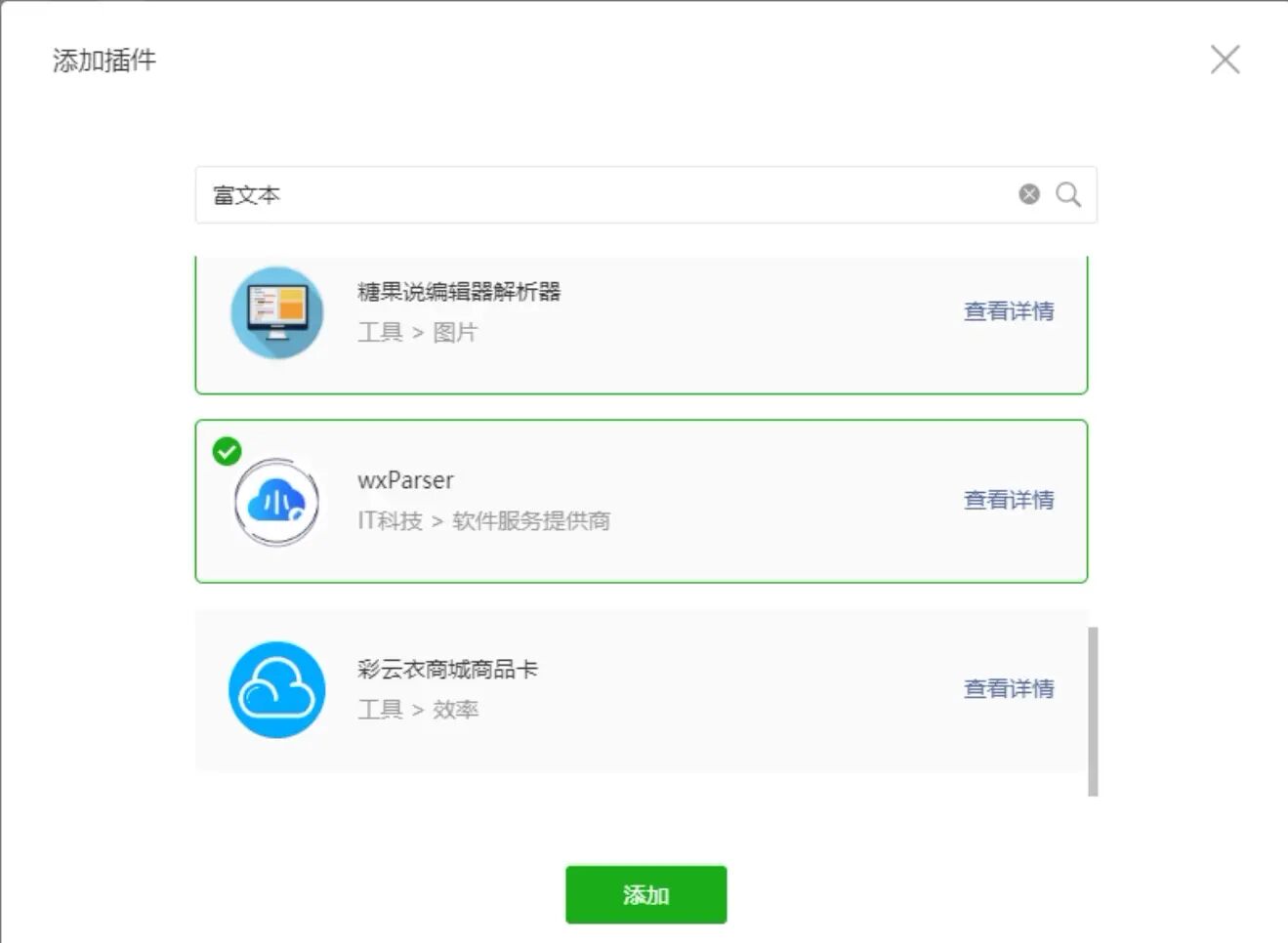 搜索并添加知晓云SDK和知晓云富文本插件
