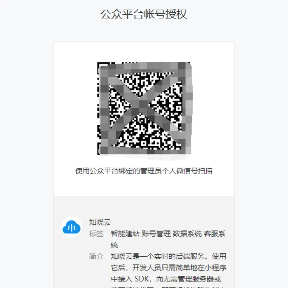 用手机扫描弹出的二维码授权知晓云