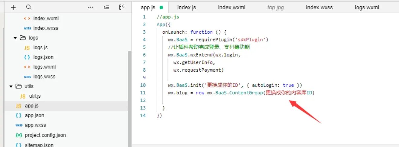 将内容库ID替换app.js内如图所示内容