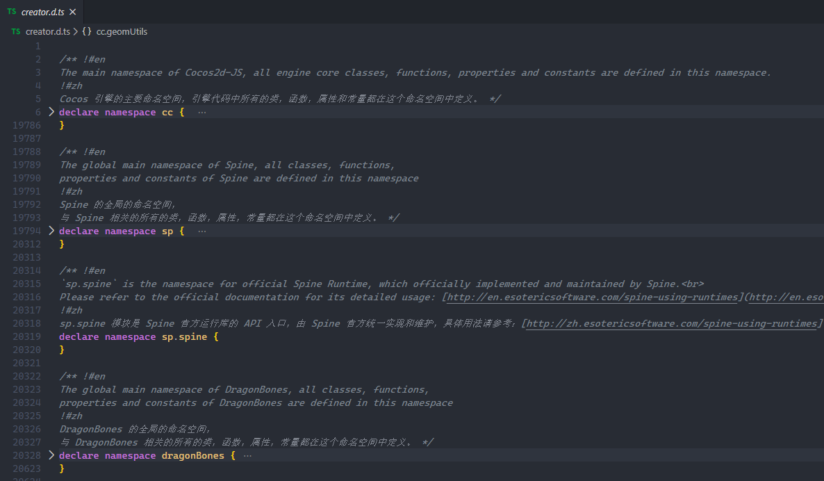- creator.d.ts 是 Cocos Creator 引擎 API 的声明文件