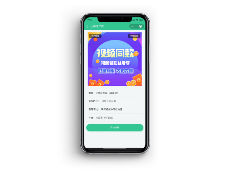 填写好商品你需要营销的页面路径,点击开始转链即可