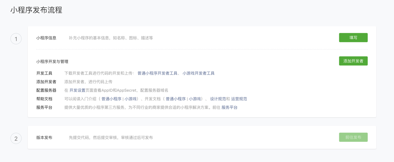 通过微信号添加,最多添加15个成员。用于给一起维护的开发者和运营人员开通,可以分别开通运营者权限、开发者权限、数据分析者权限。项目成员权限包含体验成员权限。