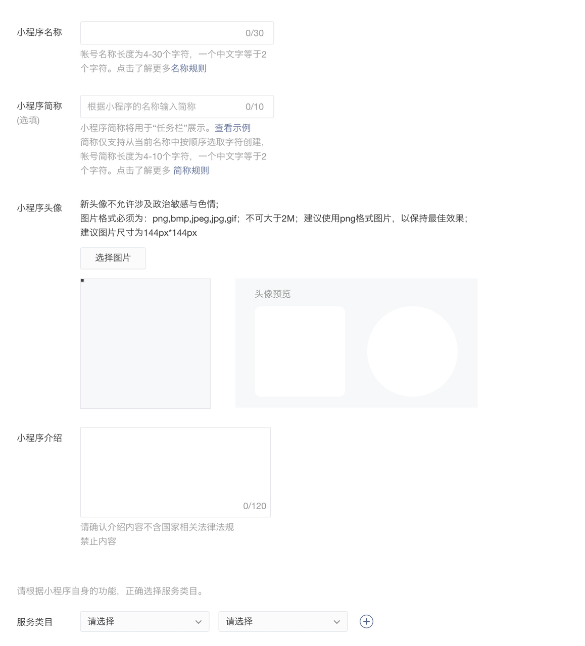填写完主体信息登记成功之后,需要补充小程序基础信息。