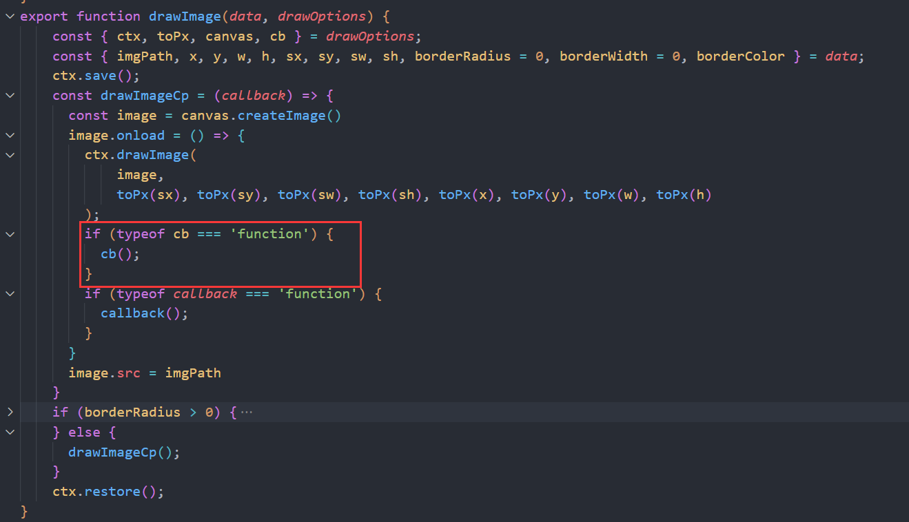 导出图片之后,发现绘制的图片是空白的,文字和矩形是正常的。是因为Canvas 2d是采用同步绘制的方式,不需要调用draw方法,也不需要等上一步绘制完,所以导出图片之前,要等待一下,确定绘制都完成。加个Timeout就行。