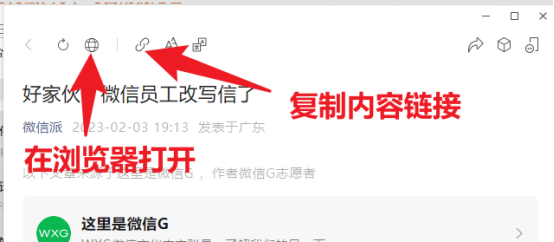 打开该公众号任意一篇内容,复制链接,在浏览器打开