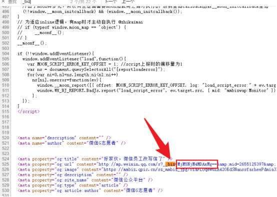 快捷键ctrl+F开启全局搜索“ __biz”然后把该公众号卡版ID复制,记得后面两个“==”号必须都复制上。