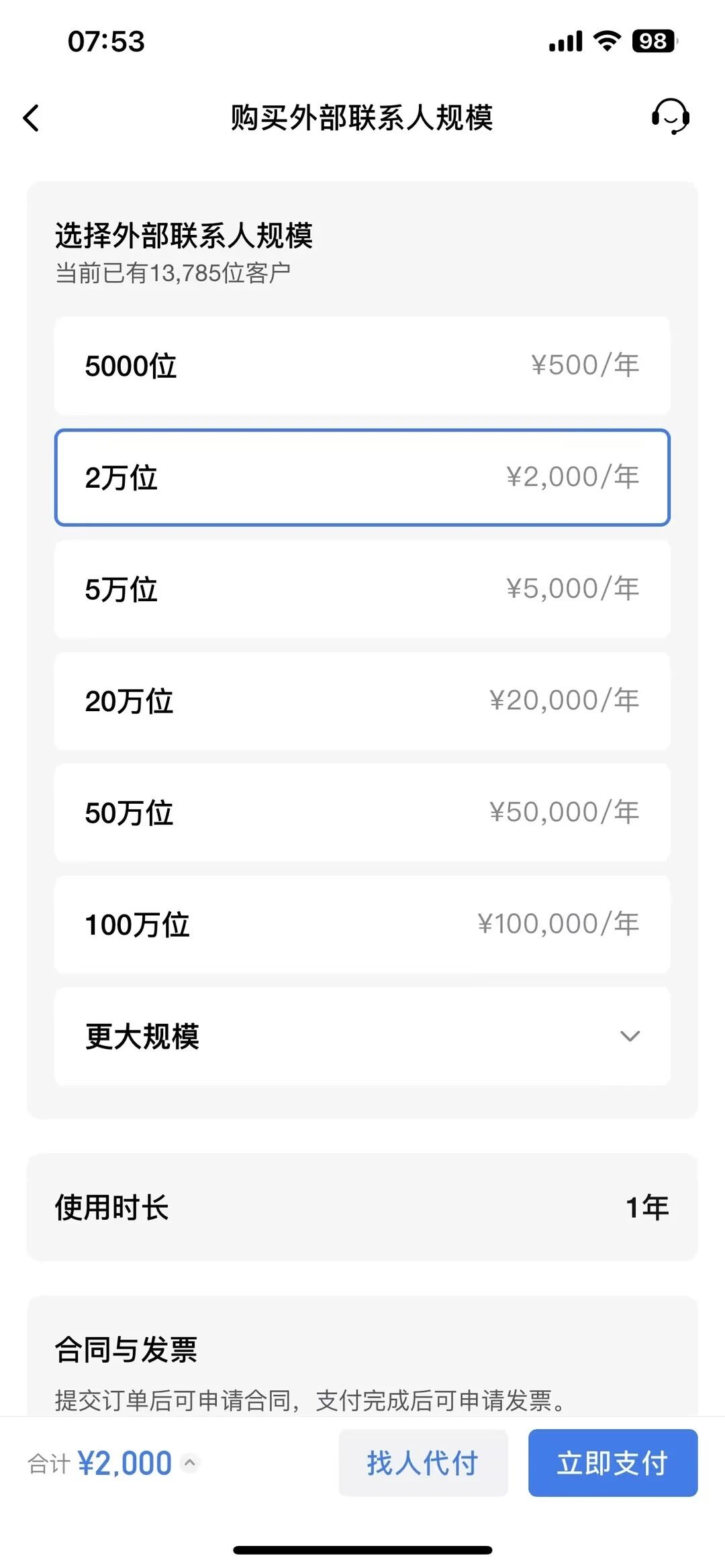 扩容到五万人,要花五千块,针对中小企业,又是一笔不小的开支!