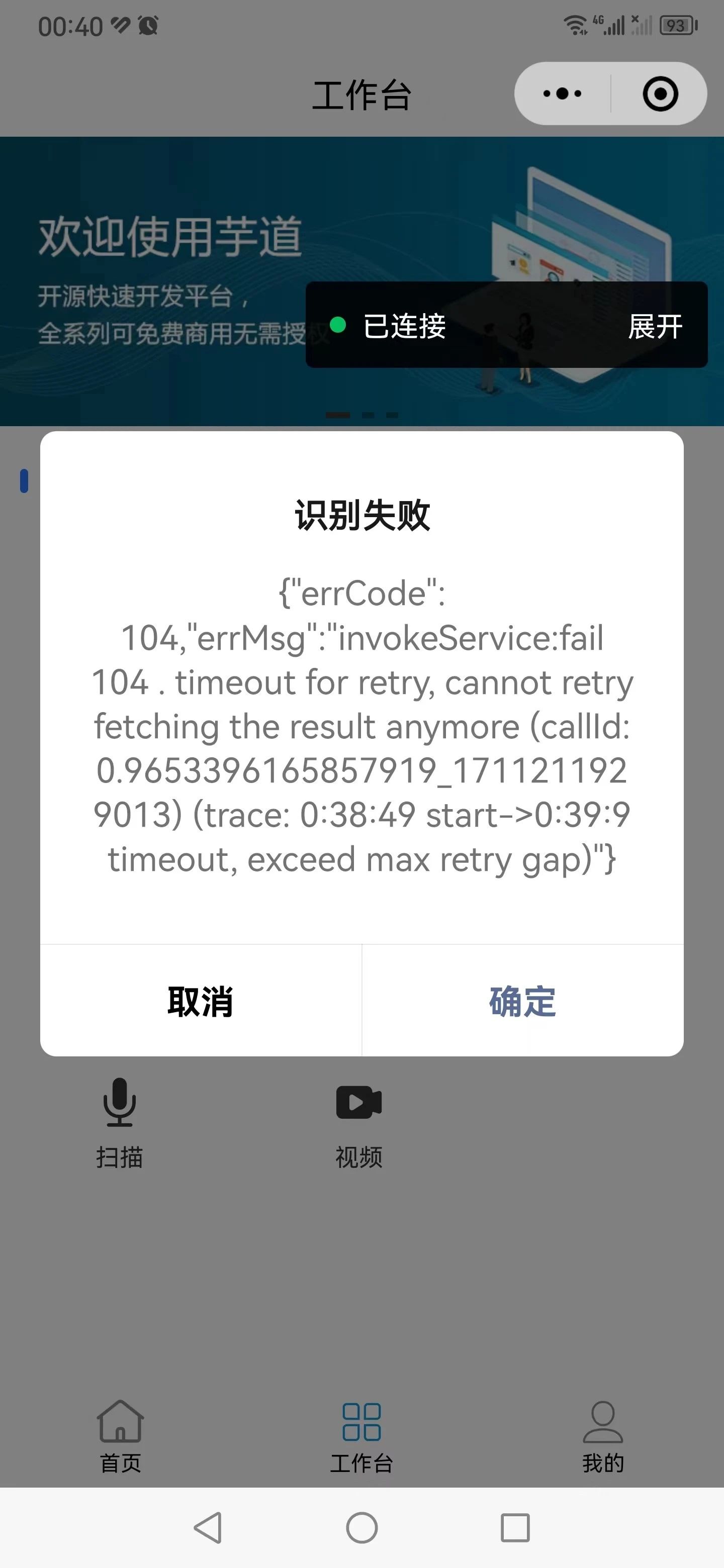 请问 调用时,一直报 errCode: 103, errMsg: invokeService: fail 103 是怎么回事啊?