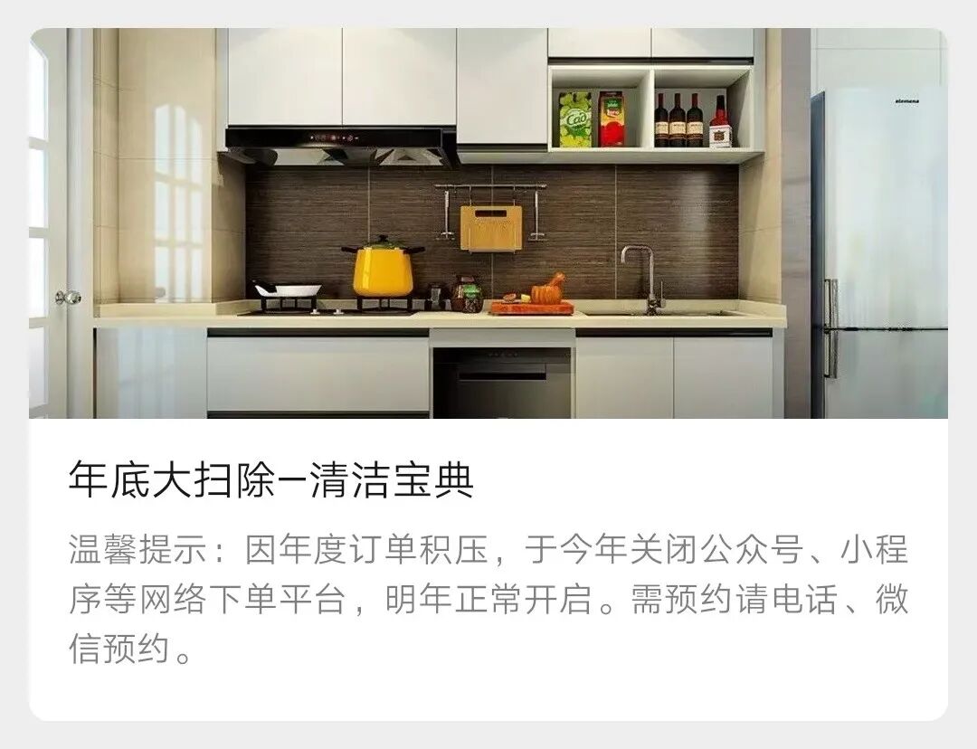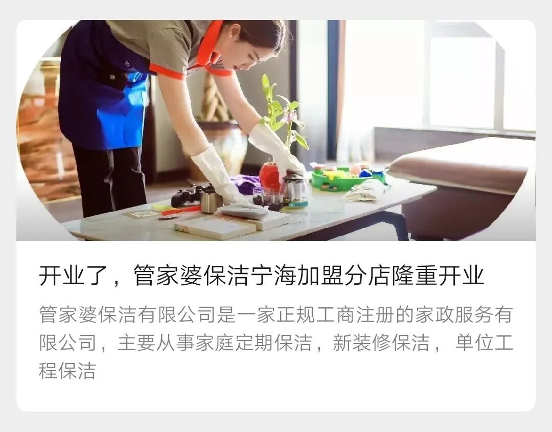 比如,客户不想时刻被营销,公众号输出一些清洁知识,让客户平时不需要用到家政的时候,自己在家怎么做清洁,像是油污清洗小妙招,不同区域如何清洁等等;