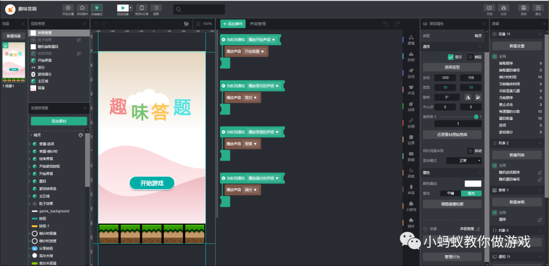 关注下方的微信公众号“小蚂蚁教你做游戏”,然后在公众号中回复“答题”即可获取到工程的链接啦!快点改编起来吧!