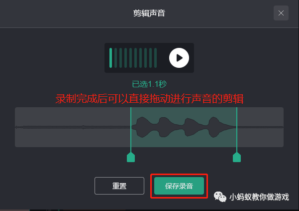 录制完声音之后,可以直接对声音进行剪辑,只需要拖拽滑动条选择你希望留下的声音即可。