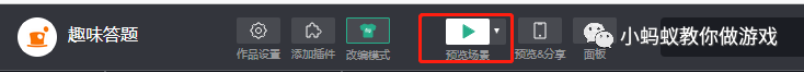 最后,点击上方的”预览场景“按钮就能够预览你的答题小游戏啦!