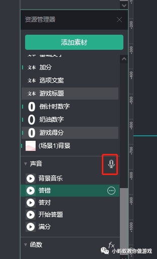 你可以录制自己的声音放到游戏中,在左侧的“资源管理器”下方找到“声音”的部分。然后点击右侧的一个“麦克风”的小按钮。