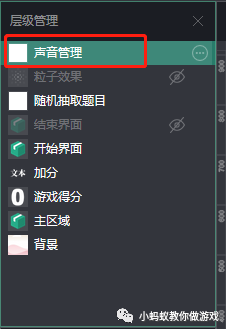 首先,在上方的“层级管理”中找到“声音管理”,然后选中。
