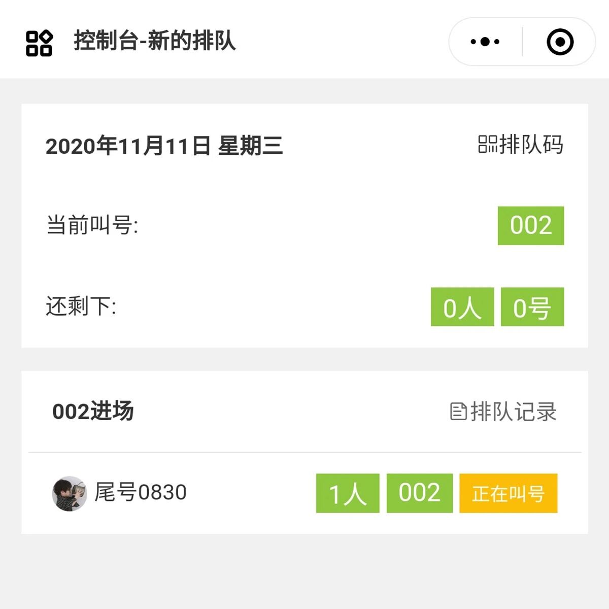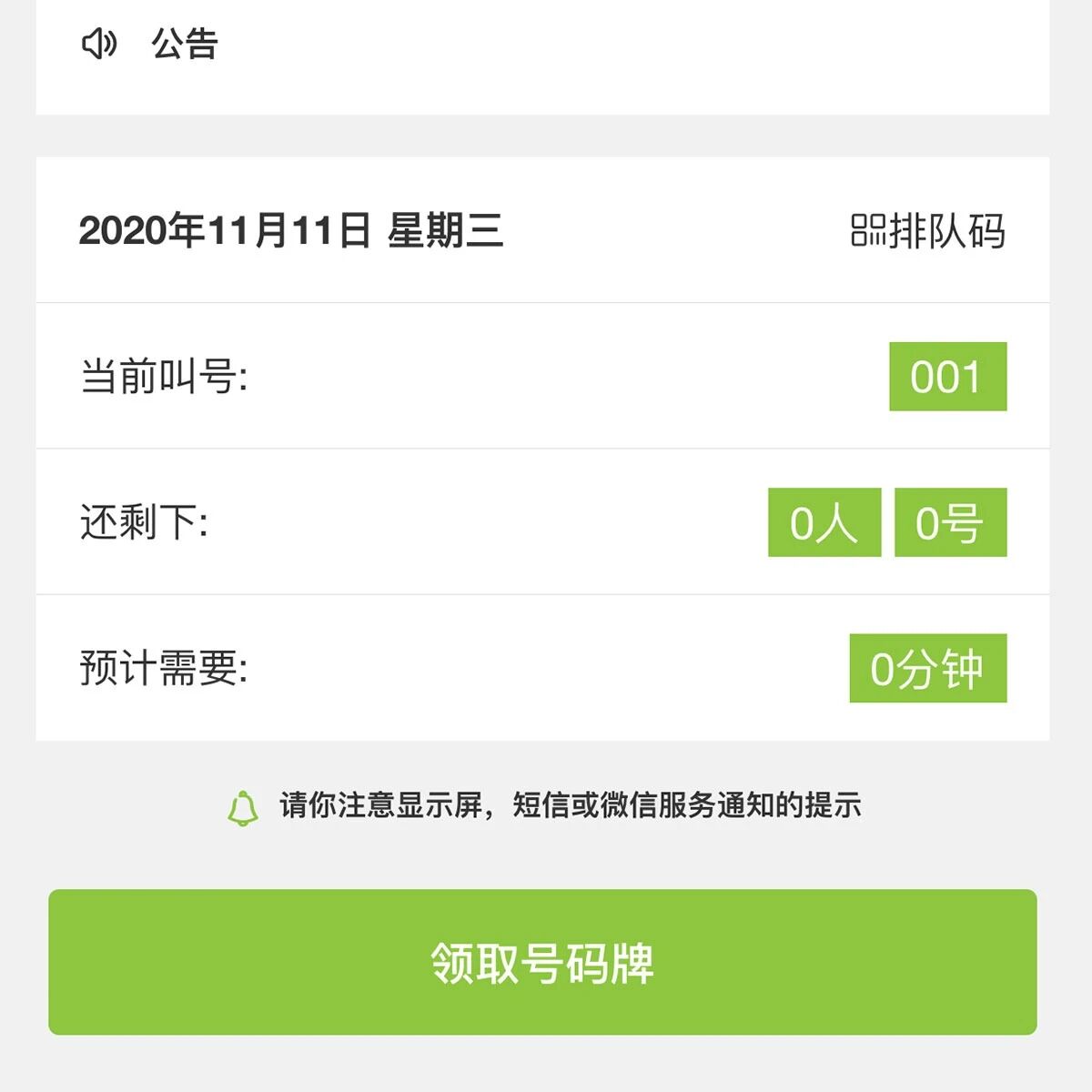 4、客户使用微信扫描排队小程序码,完成排队领号