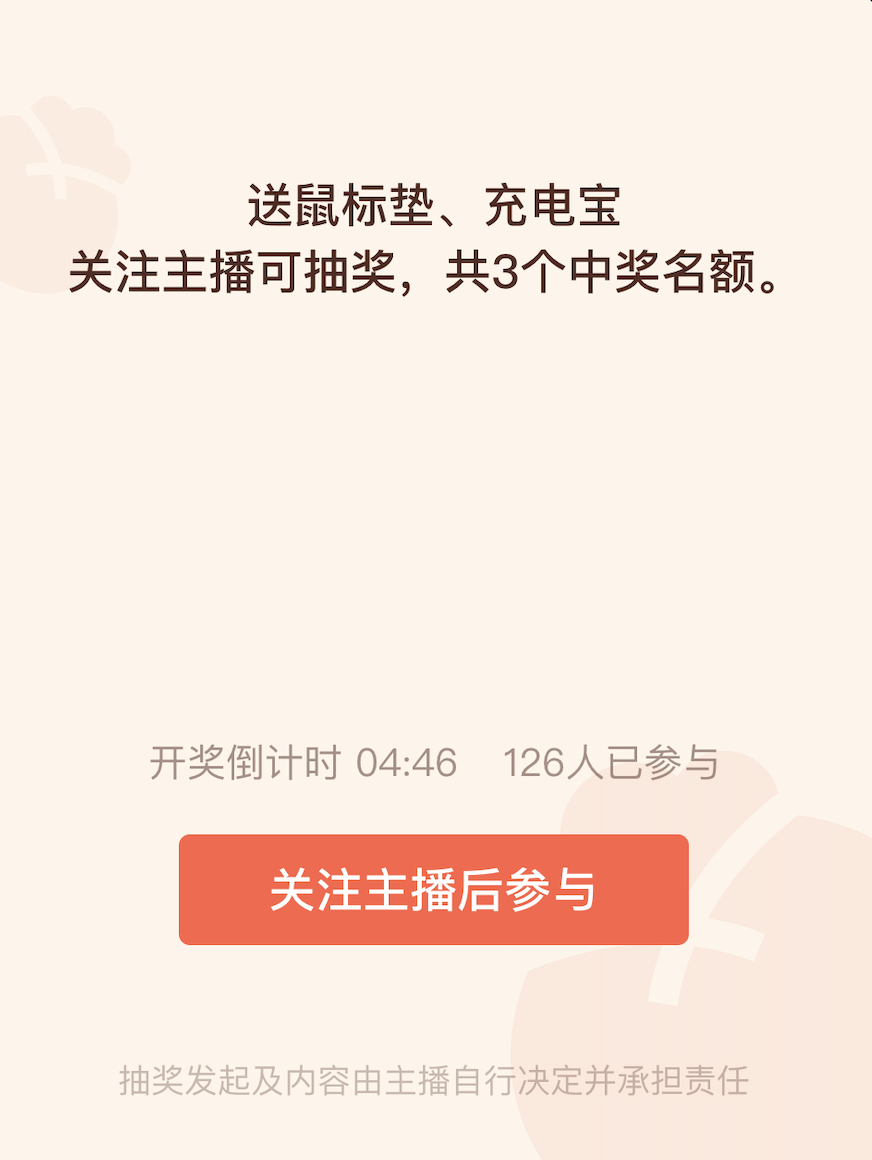 涉及关注的直播间互动功能,满足条件都将变更为关注公众号,如关注主播可参与抽奖、关注主播可申请连麦、关注主播可申请游戏上车等: