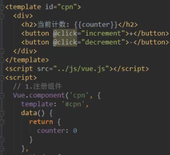 template:'#cpn',//引用下面id为cpn的组件模板