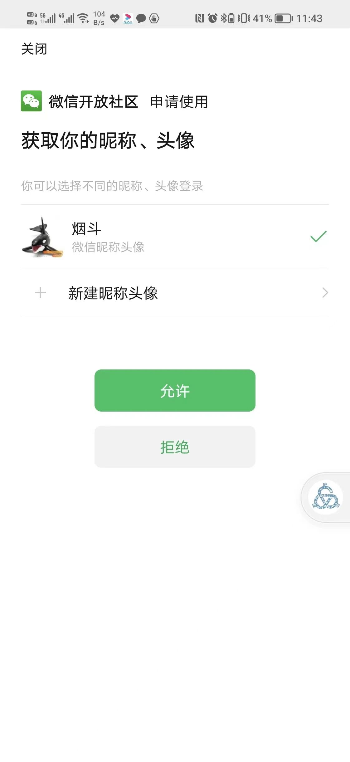 嘿嘿,虽然不是小程序,但是这界面和小程序上调用wx.getUserProfile接口后出来的授权界面也差不多,还都有个【拒绝】按钮