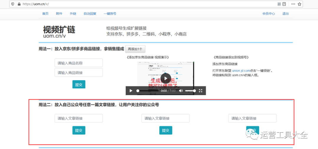 第一步:浏览器地址栏输入 uom.cn/v 进入官网或者搜索小程序“挂链”:选择用法二