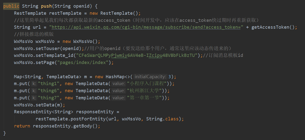 String url = "https://api.weixin.qq.com/cgi-bin/message/subscribe/send?access_token=" + getAccessToken();