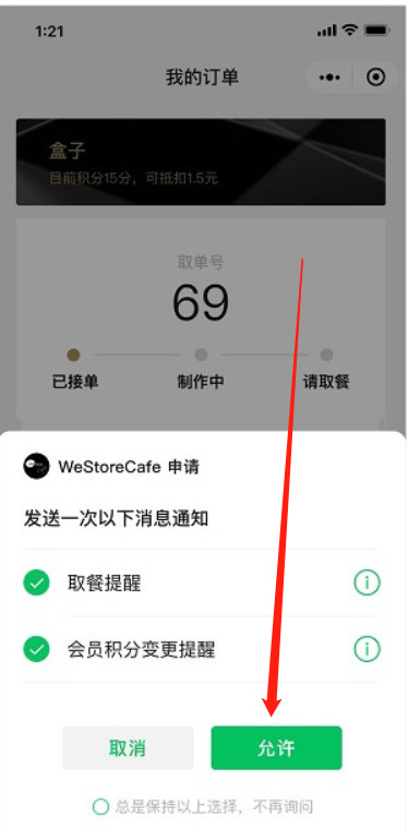 * 发送订阅消息