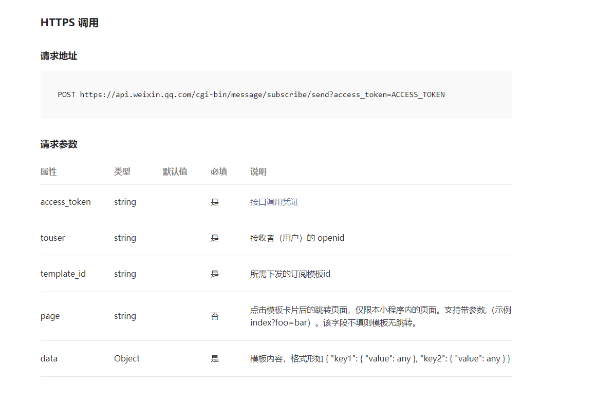 我们通过上面第二步,成功的获取到了access_token。下面就要调用小程序官方为我们提供的发送消息的接口了。先看下官方文档。
