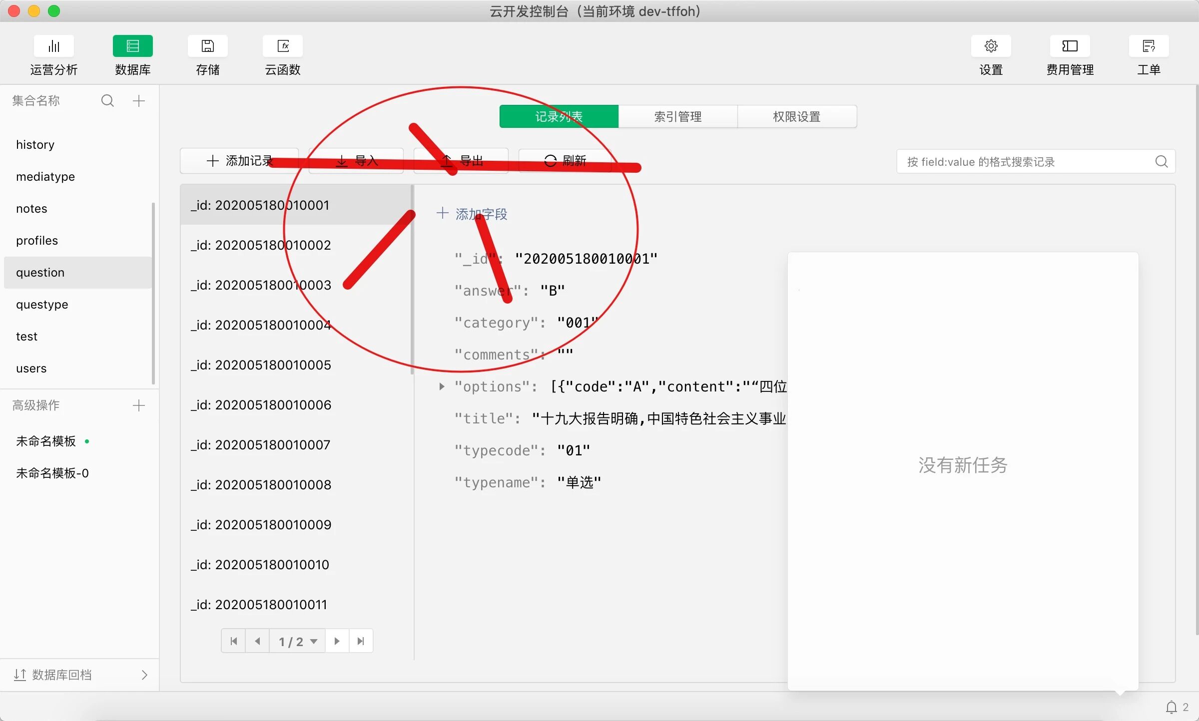 第三步、开始导入,打开云开发控制台,找到question进行导入