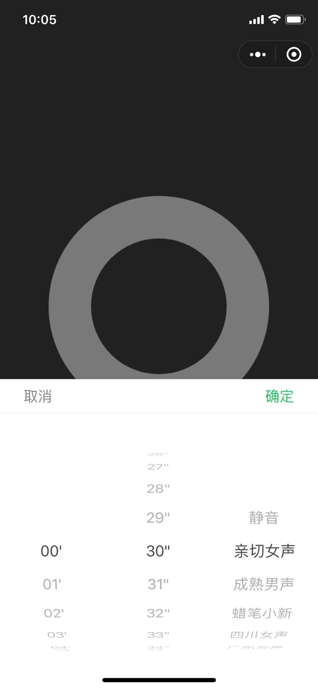 通过TTS获取特定时间节点的语音,并转化为字符格式,存入云开发数据库。前端通过脚本计时器每秒执行canvas动画及判断是否需要播放语音,如需播放则将字符串格式音频文件转化为mp3文件,并放置在用户临时文件夹,最后播放音频即可。