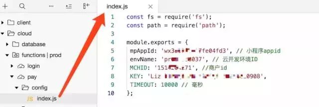config下的index.js是做支付配置用的,主要配置支付相关的账号信息
