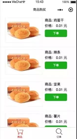 我们所需要做的就是借助云开发获取云数据库里的商品信息然后展示到商品列表,关于云开发获取商品列表并展示本节不做讲解(感兴趣的同学可以翻看作者历史博客,有写过的)