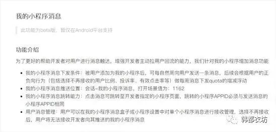目前,小程序消息功能仅对微信安卓版本开放,长期来看,应该会对苹果版本也开放。