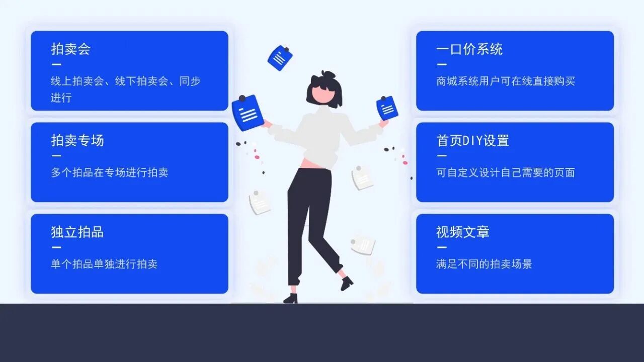 加入新型的商家自设定拍品佣金模式,以及店铺等级收费模式,打造朋友圈式拍卖系统,适合各行业交易场景,是目前流行的朋友圈新型电商系统。汇智拍卖小程序从1.0的线下交易到2.0的线上支付再到目前3.0的全新UI设计佣金模式的打造,除了前期功能的规划,也是参考了很多拍卖行业内专业用户的建议进行了全方面升级。接下来还会有更多功能的更新,希望有更多懂行的朋友一起打磨系统玩赚拍卖行业。