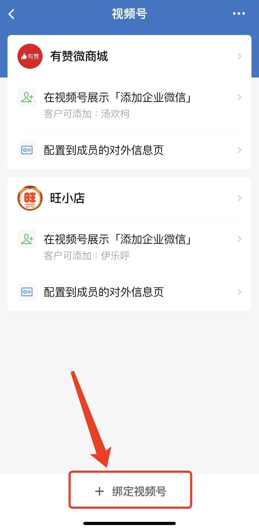 完成了这番操作,小程序和企业微信的入口就能够在视频号主页展示了。