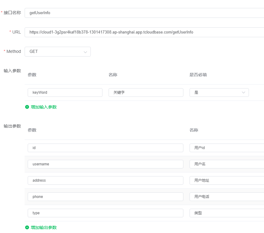 输出参数为对应云函数中的返回数据:
