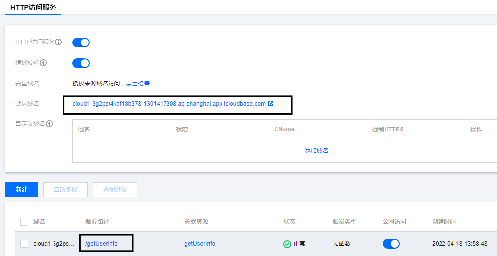 URL为云函数的触发路径。