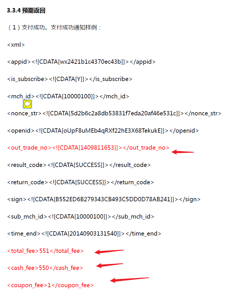 6)订单金额:total_fee(注意:此处必须要传订单总金额为552(单位:分))