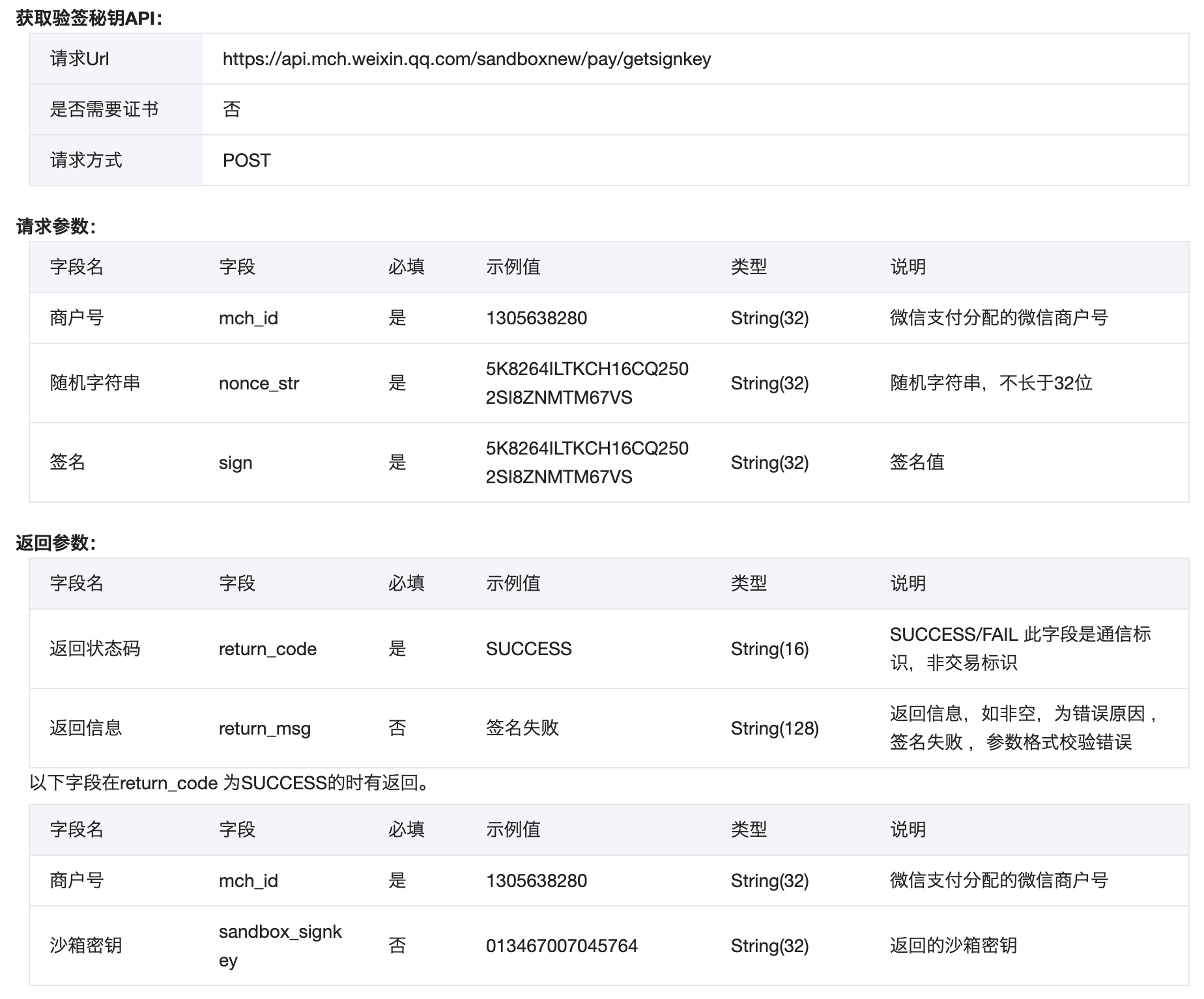 接口调用(Post请求):https://api.mch.weixin.qq.com/sandboxnew/pay/getsignkey
