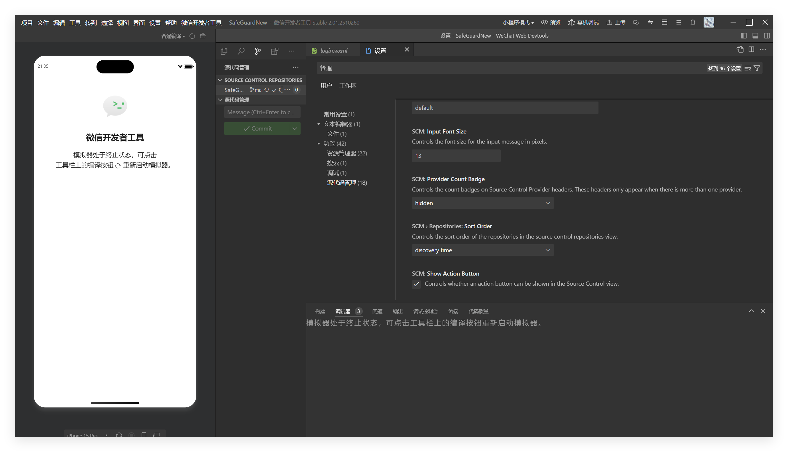 微信小程序工具更新到最新版本找到源代码的入口了。。。好奇怪。。以前还可以看到上传代码到git的现在完全没有了。